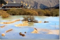 黄龙古寺,位于四川阿坝藏族自治州松潘县境内黄龙风景区中段,原有前、中、后三寺庙,前寺现仅存遗址。黄龙中寺共五殿,建筑面积占地约700平方米。属佛教寺庙,为单檐歇山式造型,古朴雄伟。原五殿,分别为灵官殿、弥勒殿、天王殿、大佛殿、观音殿,现仅存观音殿及十八罗汉塑像。近年已修复一新。黄龙后寺距黄龙中寺约2.5公里,亦为马朝觐所建。庙字随山就势,宏伟壮观,飞格斗拱,雕梁画栋,独具风格。黄龙后寺就是今天游客所说的..