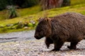 袋熊体形粗壮似熊,眼小,脸似鼠。体重可达35千克,头骨略扁平,鼻面部相对较短,体型比树袋熊还短粗,生活于草原或丘陵地带,营穴居生活,善于挖洞。袋熊主要分布于澳大利亚的东部、南部及塔斯马尼亚岛。