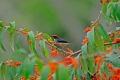 朱背啄花鸟是一小型吸蜜鸟,以背部朱红而得名。
